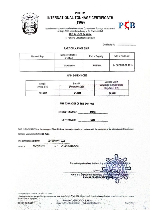 GRT/NRT: 10276T/5462T